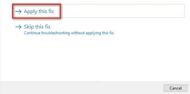 - As soon as a troubleshooting procedure begins, wait patiently until the probe is complete. If a fix is developed, click on Apply this fix to implement the repair.