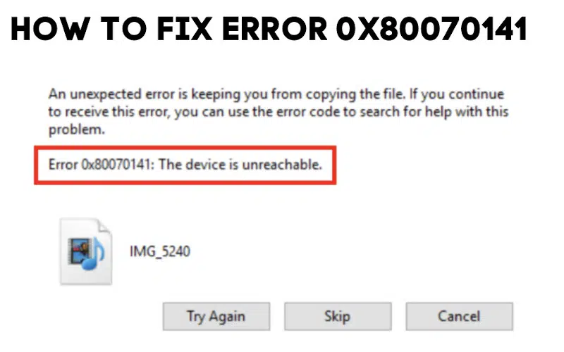 Error 0x80070141 is a Windows error code that means the device is unreachable. This could be due to a networking problem, or an issue with the device itself.