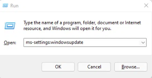- Now Type ms-settings:windowsupdate in the Run box and click the OK button to open the Windows Update window.