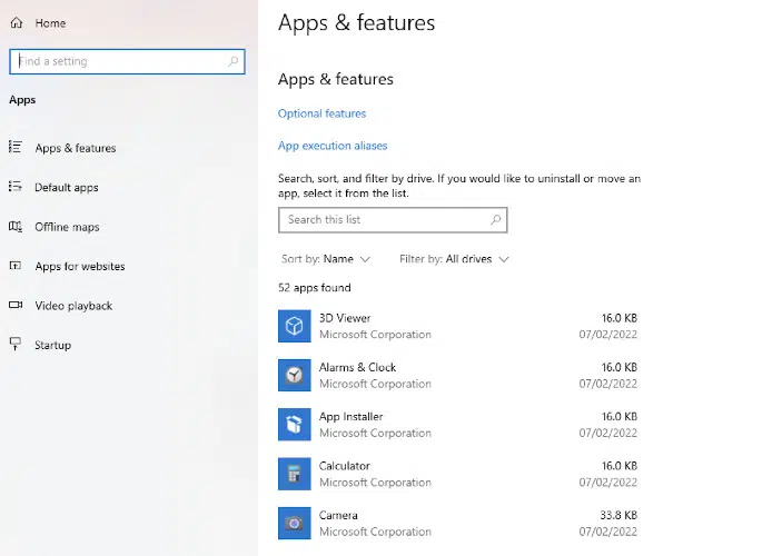 - Click on the Apps & features option to uninstall the unwanted and suspicious apps from your PC.
