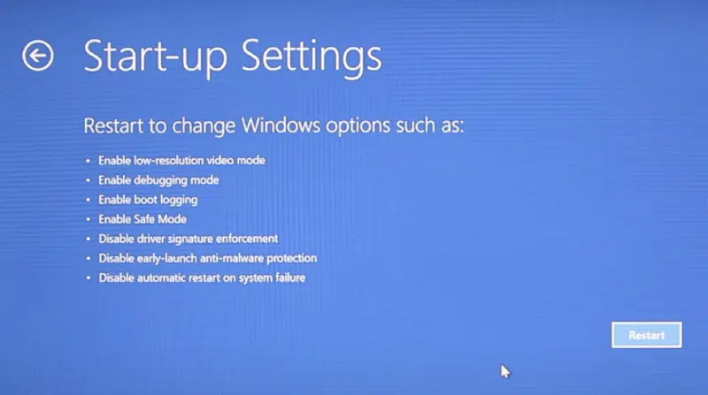 - Choose Troubleshoot > Advanced Options > Startup Settings > Restart.